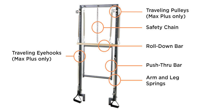 Το Κατακόρυφο Πλαίσιο παρέχει μια σειρά από πρόσθετες επιλογές ελατηρίων και το Mat Converter μετατρέπει το Reformer σε μια υπερυψωμένη πλατφόρμα-στρώμα, στην οποία μπορούν να πραγματοποιηθούν ασκήσεις Pilates για άτομα με περιορισμένη κινητικότητα.